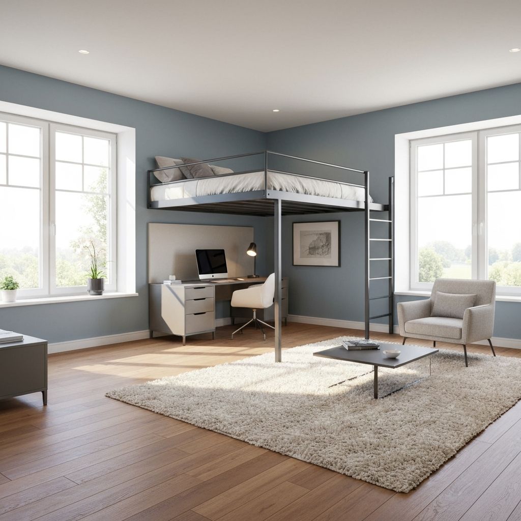 AfterCompact bedroom gains workspace with elevated sleeping platform